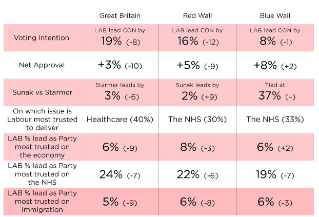 A string of pollsters are showcasing the Tories making marginal gains in the polls, whilst Labour seems to be only just maintaining their grip on a heavy lead. In an example of this, respected pollster Redfield and Wilton Strategies noted that within the last month, Starmer has presided in and 8% cut of Labour's overall lead, whilst his lead a a presumed better PM than Sunak has been slashed to 3%.